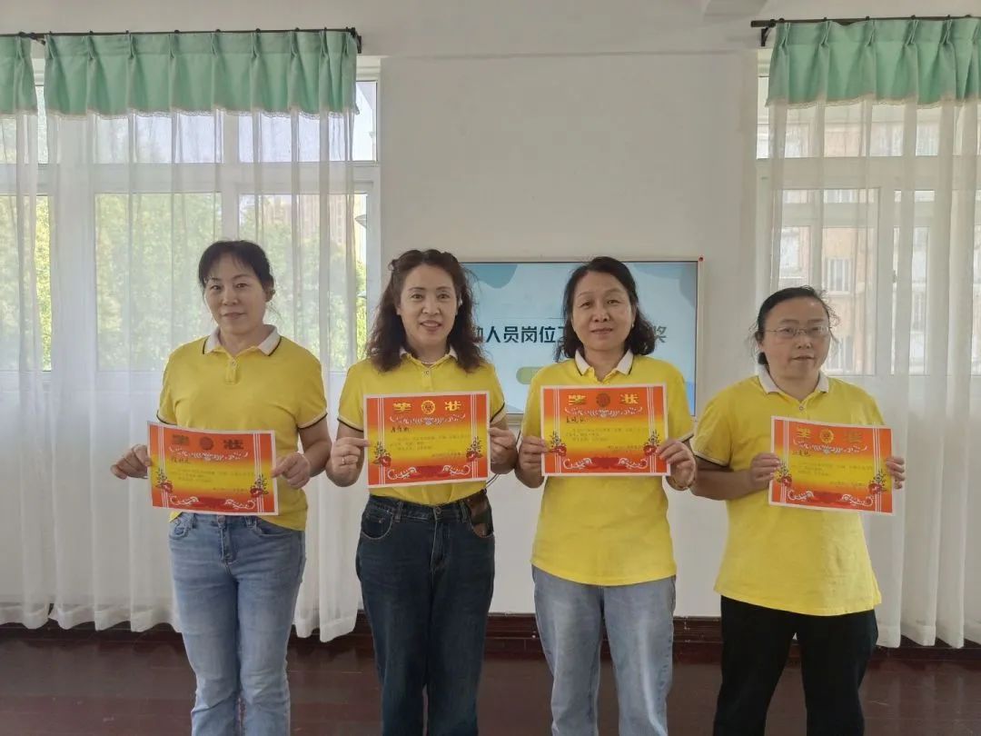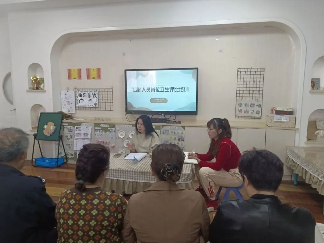 由园长带队的检查组成员们,根据各岗位卫生工作评比要求,对每个角落做到一看、二摸、三检查。不放过任何一个细节,不丢下任何一个角落。并对检查中发现的问题立即和各岗位人员进行沟通与反馈,做到及时发现,及时整改。 根据本次后勤各岗位人员卫生工作评比细则,评选结果如下:第一名炊事员;第二名保安、保育员;保育员个人奖项:第一名刘风清、王晨英;第二名袁晓红、徐林凤、唐蓓敏、江春艳。并对以上获奖人员颁发奖状,以资鼓励。 第一名:炊事员 第二名:保安、保育员 保育员个人奖第一名:刘风清、王晨英 保育员个人奖第二名: 袁晓红、徐林凤、唐蓓敏、江春艳