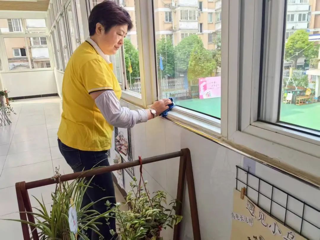 幼儿园是孩子生活与游戏的场所, 环境作为一种“隐性课程”,不仅是幼儿园中“美”的存在,更是引导幼儿主动学习的桥梁。为了给幼儿创设一个温馨、舒适、整洁的生活和学习环境,确保在园幼儿身体健康,我们始终把卫生工作放在重要位置。 2025年4月15日至2025年4月25日,江南康馨幼儿园开展了为期一周的后勤人员卫生大扫除工作,并进行了后勤各岗位人员卫生工作评比。 后勤人员们干劲十足,分工明确,大家发扬不怕脏、不怕累的精神,擦窗台、清洗幼儿园盥洗室、清理幼儿园卫生死角,确保设施、设备整洁,做到不留死角、不留盲区。 炊事员: 厨房的卫生工作关乎幼儿的饮食安全,对此,厨房工作人员对厨房的地面、墙面、工作台面等进行彻底清洁,对炊具、餐具、餐台进行了清洗、消毒。 库房:物品摆放有序且有对应标签。